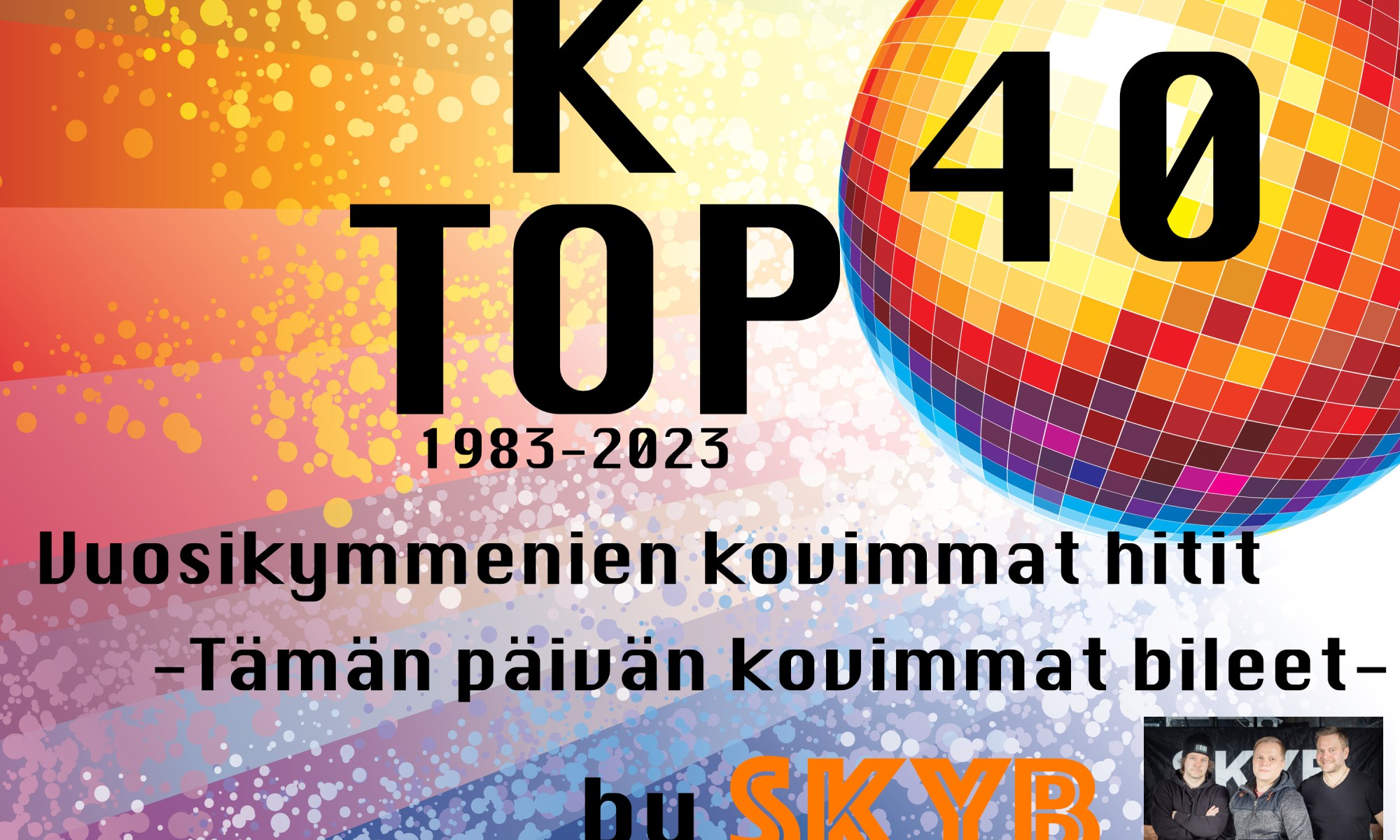 Kuten nimi kertoo! Muusiikki on aikuiseen makuun top40 listahittejä neljältä vuosikymmeneltä! Bileet aloitellaan alkuillasta ja laadun takaa kokemus tapahtumien järjestämisestä jo neljältä vuosikymmeneltä!